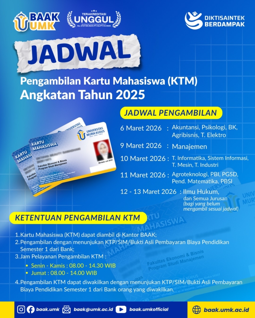 Jadwal Pengambilan Kartu Mahasiswa (KTM) Angkatan Tahun 2025