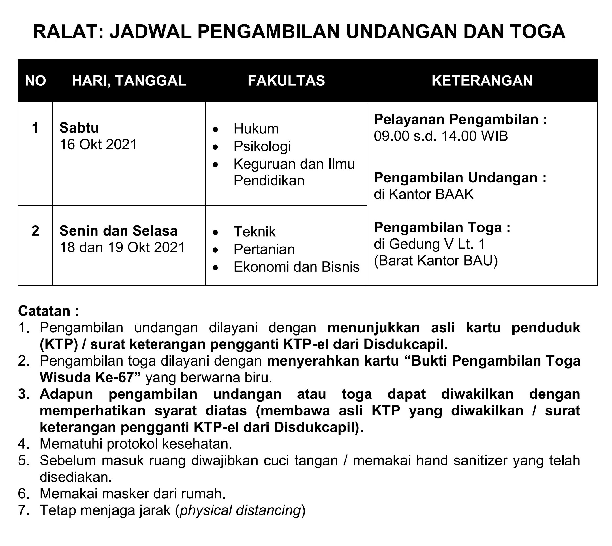 - Jumlah penumpang dalam 1 (satu) mobil maksimal sebanyak 4 orang (termasuk wisudawan).