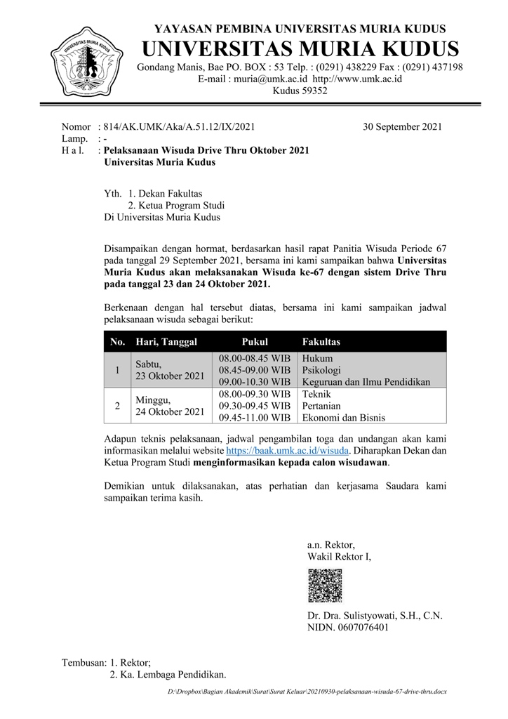 - Cek Point 3: Calon/Pendamping Wisudawan menyerahkan undangan wisuda ke panitia/seksi konsumsi, (Calon Wisudawan mendapatkan konsumsi, buku wisuda, dan paket protokol kesehatan dari panitia, diantaranya masker)